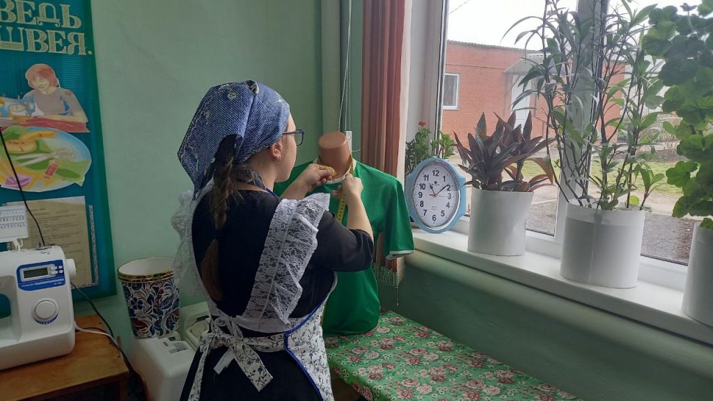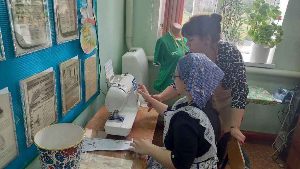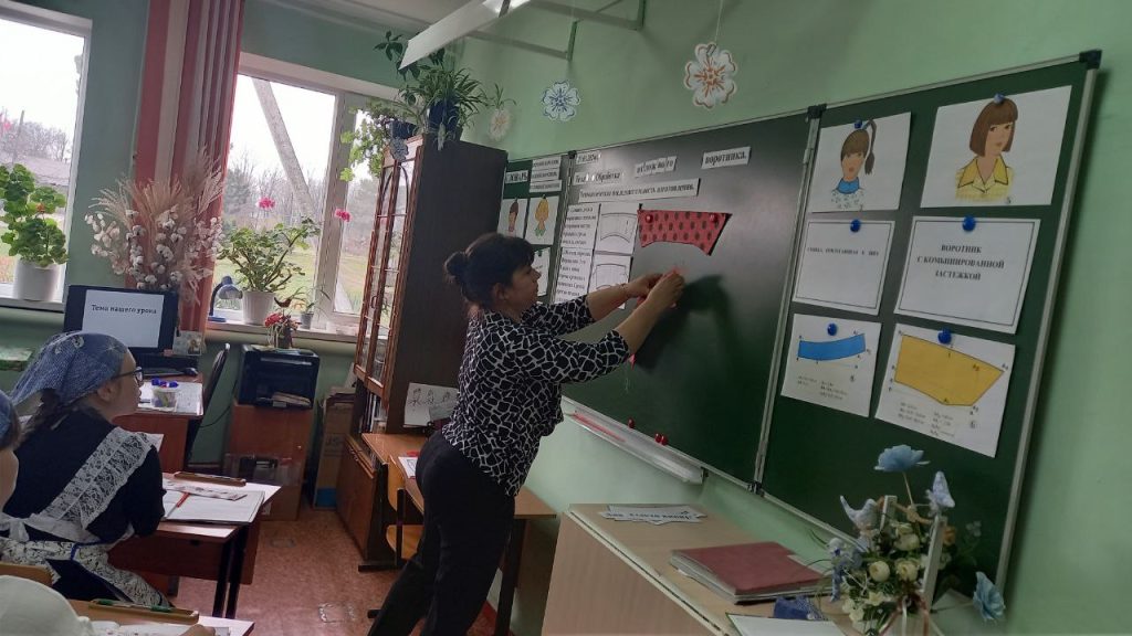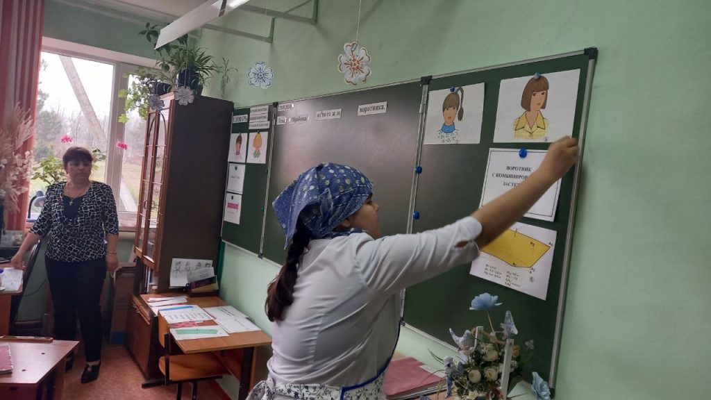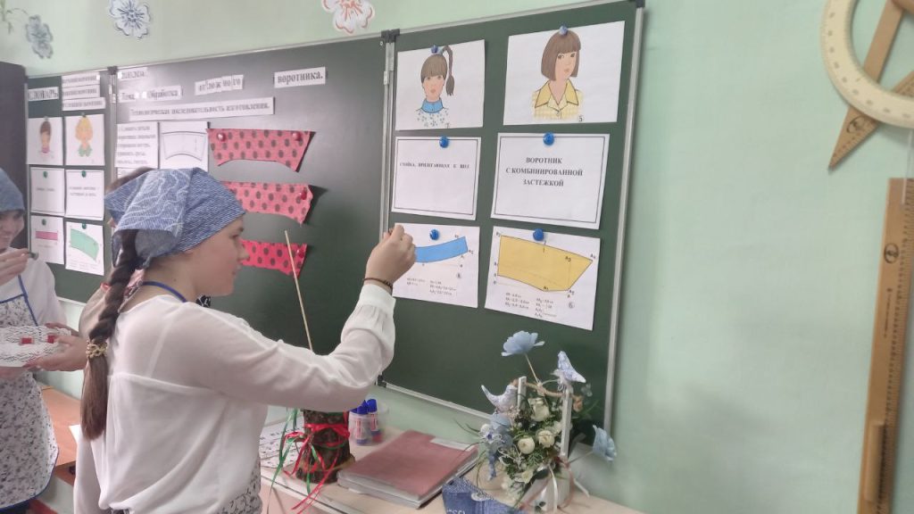 Сегодня открытый урок профильного труда в 8А классе провела Кабзарь Н.Н. Тема урока: «Обработка отложного воротника».