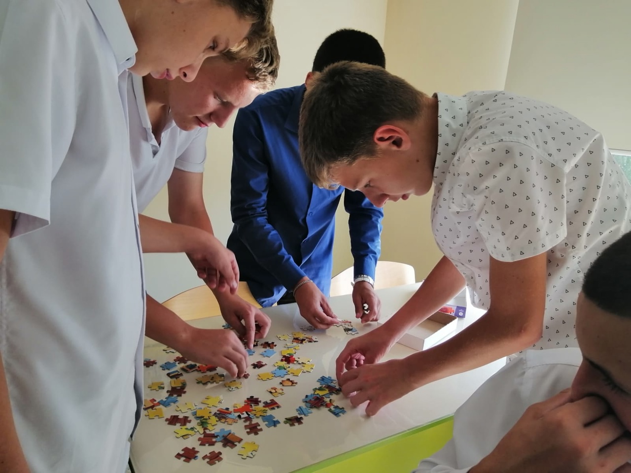 Соревнование между классами «Кто быстрее соберет пазл?» прошло в школе-интернате. Пазлы команды получили за победы в мероприятиях, прошедших на неделе физкультуры.