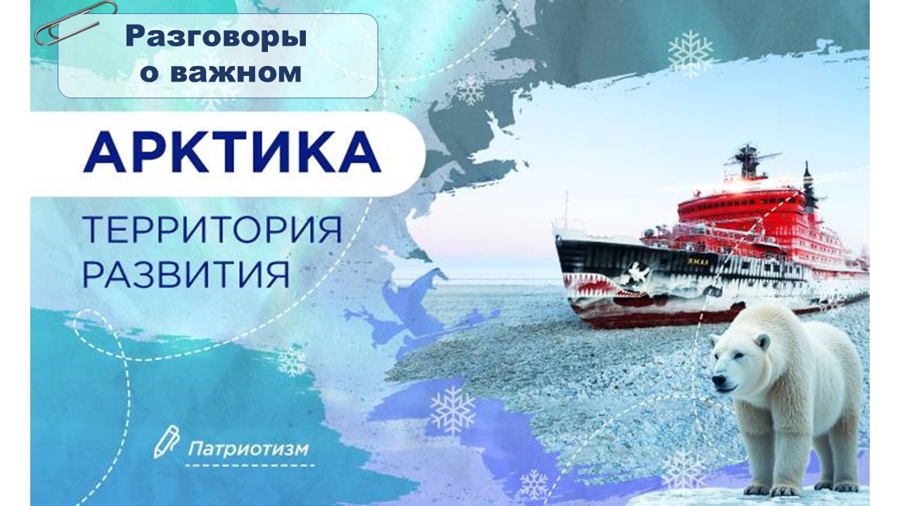 для обучающихся прошли «Разговоры о важном» на тему «Арктика – территория развития». Выбор темы для разговора неслучаен – 28 февраля в нашей стране будет отмечаться День Арктики. Арктика – это не просто географическая территория; это стратегически важная область для развития нашей страны. Артика – это ресурсная база России, её можно назвать ледяной сокровищницей. Интересно, что в наши дни она все еще остается неизученной до конца.