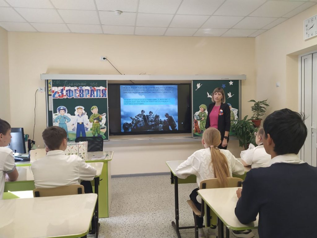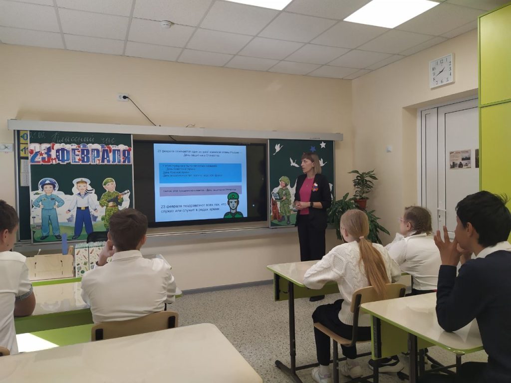 Классный час «День защитника Отечества: история и традиции праздника» провела в 9″а» классе классный руководитель Каун Е.Н.