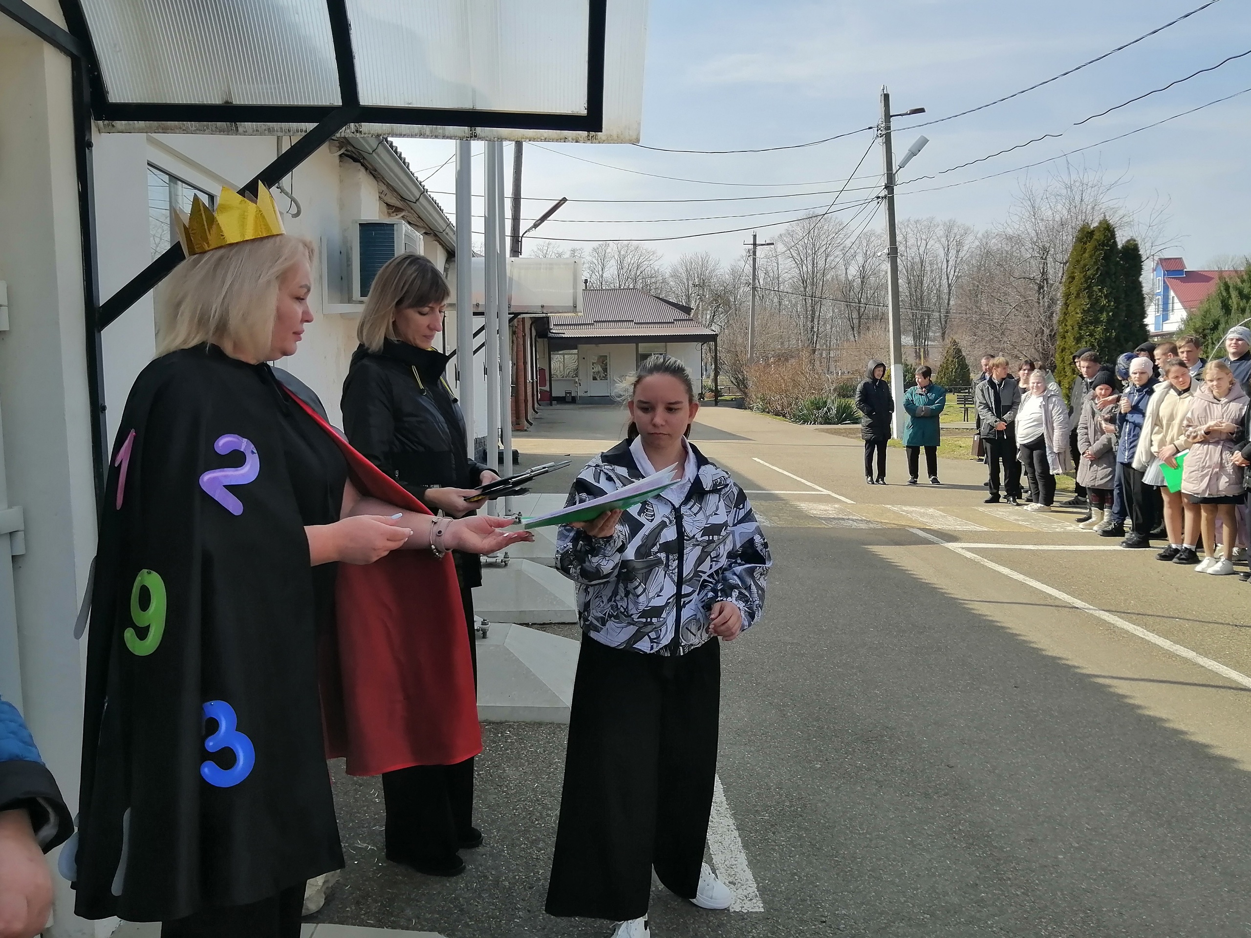 Сегодня в школе стартовала предметная неделя по математике «Калейдоскоп геометрических фигур». На торжественной линейки присутствовала царица Математики, которая провела викторину для учащихся и раздала классам задания и план мероприятий на неделю.