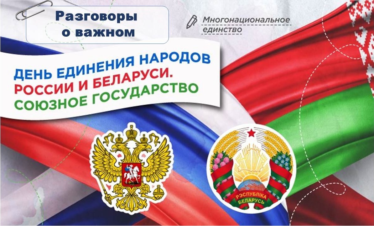 Сегодня занятия «Разговоры о важном» в школе-интернате прошли по теме «День единения народов России и Беларуси. Союзное государство». Ребятам напомнили, что почти 30 лет назад, 2 апреля 1996 года, был подписан Договор об образовании сообщества двух стран. С тех пор каждое 2 апреля отмечается День единения народов Беларуси и России. Этот день напоминает о важности дружбы и сотрудничества между странами. Совместные программы Союзного государства по развитию экономики, науки, транспорта и обороны делают жизнь людей комфортнее, безопаснее, интереснее, создают перспективы для будущего.