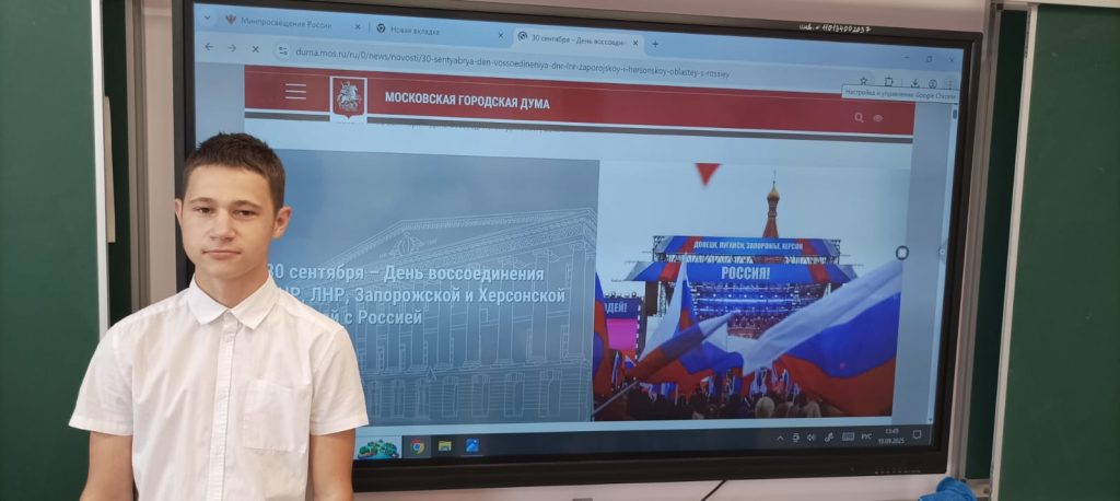 Урок мужества «День воссоединения Донецкой Народной Республики, Луганской Народной Республики, Запорожской Народной республики и Херсонской области с Российской Федерацией (2022 год).