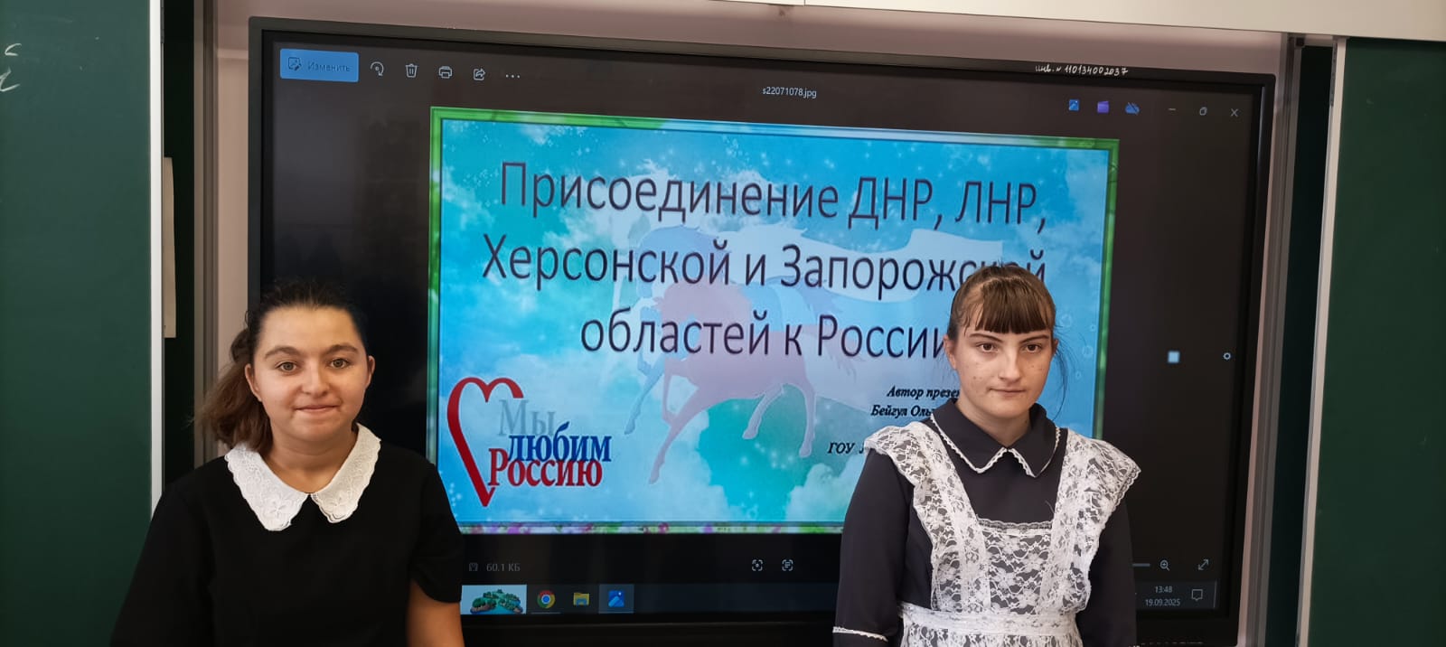 Урок мужества «День воссоединения Донецкой Народной Республики, Луганской Народной Республики, Запорожской Народной республики и Херсонской области с Российской Федерацией (2022 год).
